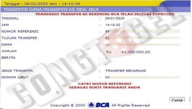 Dibawah ini merupakan bukti transfer pembayaran JP kemenangan member CONGTOGEL. Ini membuktikan jika kami adalah bandar togel yang sangat kredible dan dapat dipercaya.