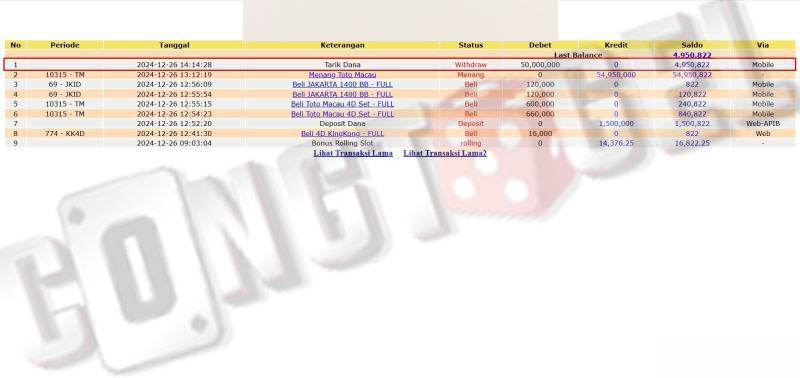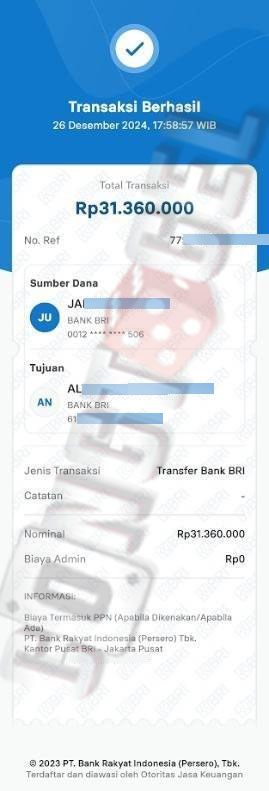 Dibawah ini merupakan bukti transfer pembayaran JP kemenangan member CONGTOGEL. Ini membuktikan jika kami adalah bandar togel yang sangat kredible dan dapat dipercaya.