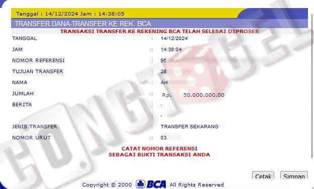 Dibawah ini merupakan bukti transfer pembayaran JP kemenangan member CONGTOGEL. Ini membuktikan jika kami adalah bandar togel yang sangat kredible dan dapat dipercaya.