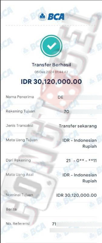 Dibawah ini merupakan bukti transfer pembayaran JP kemenangan member CONGTOGEL. Ini membuktikan jika kami adalah bandar togel yang sangat kredible dan dapat dipercaya.
