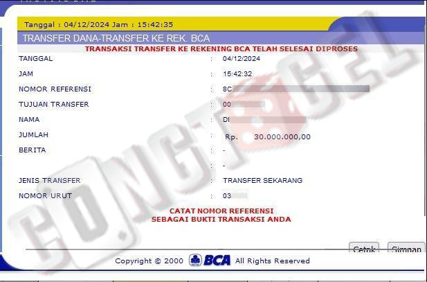 Dibawah ini merupakan bukti transfer pembayaran JP kemenangan member CONGTOGEL. Ini membuktikan jika kami adalah bandar togel yang sangat kredible dan dapat dipercaya.