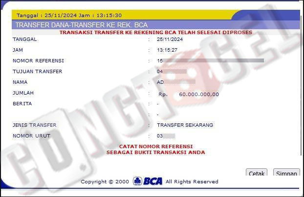Dibawah ini merupakan bukti transfer pembayaran JP kemenangan member CONGTOGEL. Ini membuktikan jika kami adalah bandar togel yang sangat kredible dan dapat dipercaya.