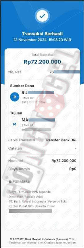 Dibawah ini merupakan bukti transfer pembayaran JP kemenangan member CONGTOGEL. Ini membuktikan jika kami adalah bandar togel yang sangat kredible dan dapat dipercaya.
