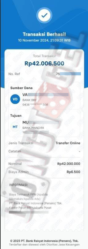 Dibawah ini merupakan bukti transfer pembayaran JP kemenangan member CONGTOGEL. Ini membuktikan jika kami adalah bandar togel yang sangat kredible dan dapat dipercaya.