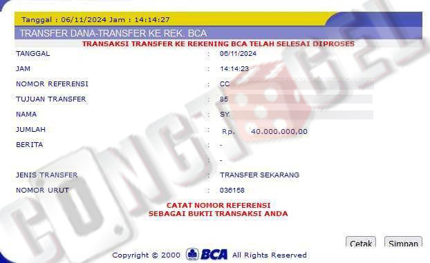 Dibawah ini merupakan bukti transfer pembayaran JP kemenangan member CONGTOGEL. Ini membuktikan jika kami adalah bandar togel yang sangat kredible dan dapat dipercaya.