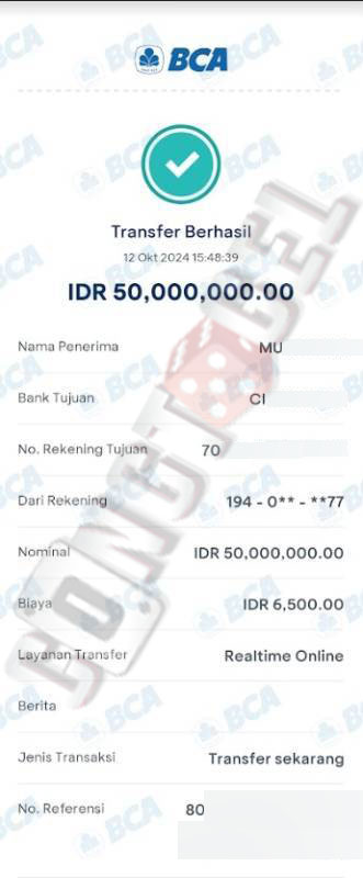Dibawah ini merupakan bukti transfer pembayaran JP kemenangan member CONGTOGEL. Ini membuktikan jika kami adalah bandar togel yang sangat kredible dan dapat dipercaya.