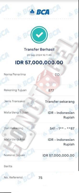 Dibawah ini merupakan bukti transfer pembayaran JP kemenangan member CONGTOGEL. Ini membuktikan jika kami adalah bandar togel yang sangat kredible dan dapat dipercaya.