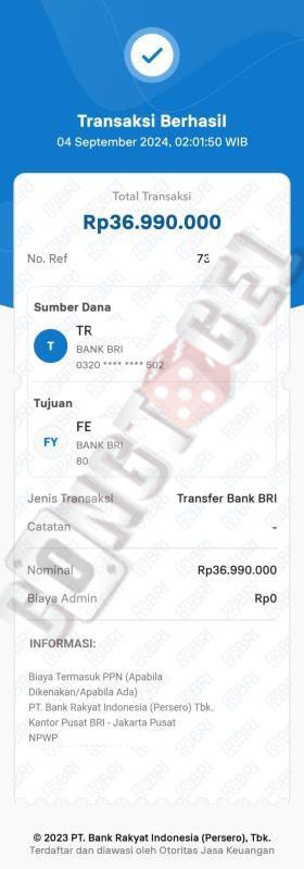 Dibawah ini merupakan bukti transfer pembayaran JP kemenangan member CONGTOGEL. Ini membuktikan jika kami adalah bandar togel yang sangat kredible dan dapat dipercaya.