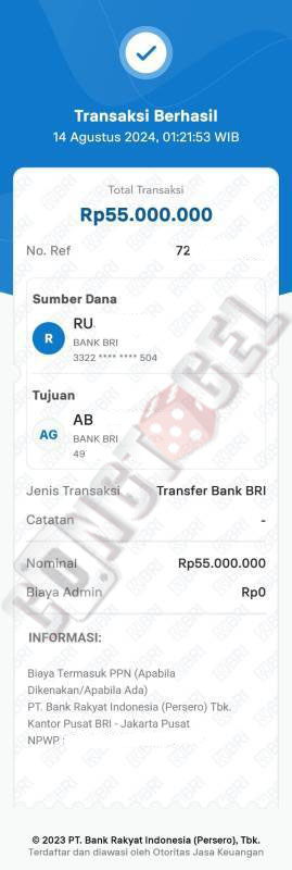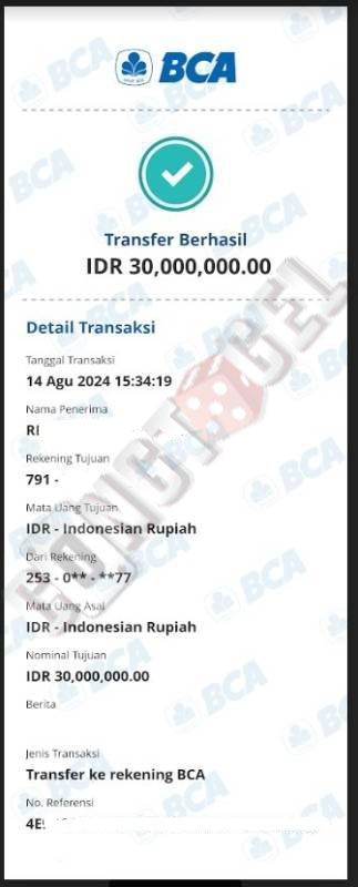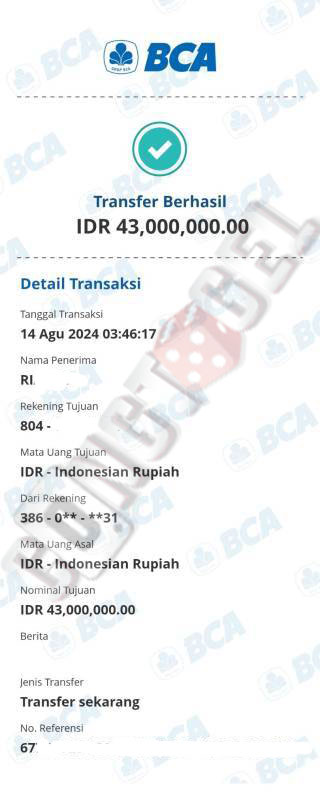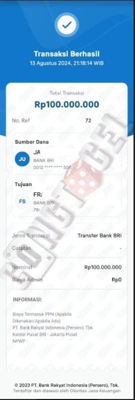 Dibawah ini merupakan bukti transfer pembayaran JP kemenangan member CONGTOGEL. Ini membuktikan jika kami adalah bandar togel yang sangat kredible dan dapat dipercaya.