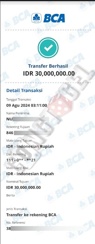 Dibawah ini merupakan bukti transfer pembayaran JP kemenangan member CONGTOGEL. Ini membuktikan jika kami adalah bandar togel yang sangat kredible dan dapat dipercaya.