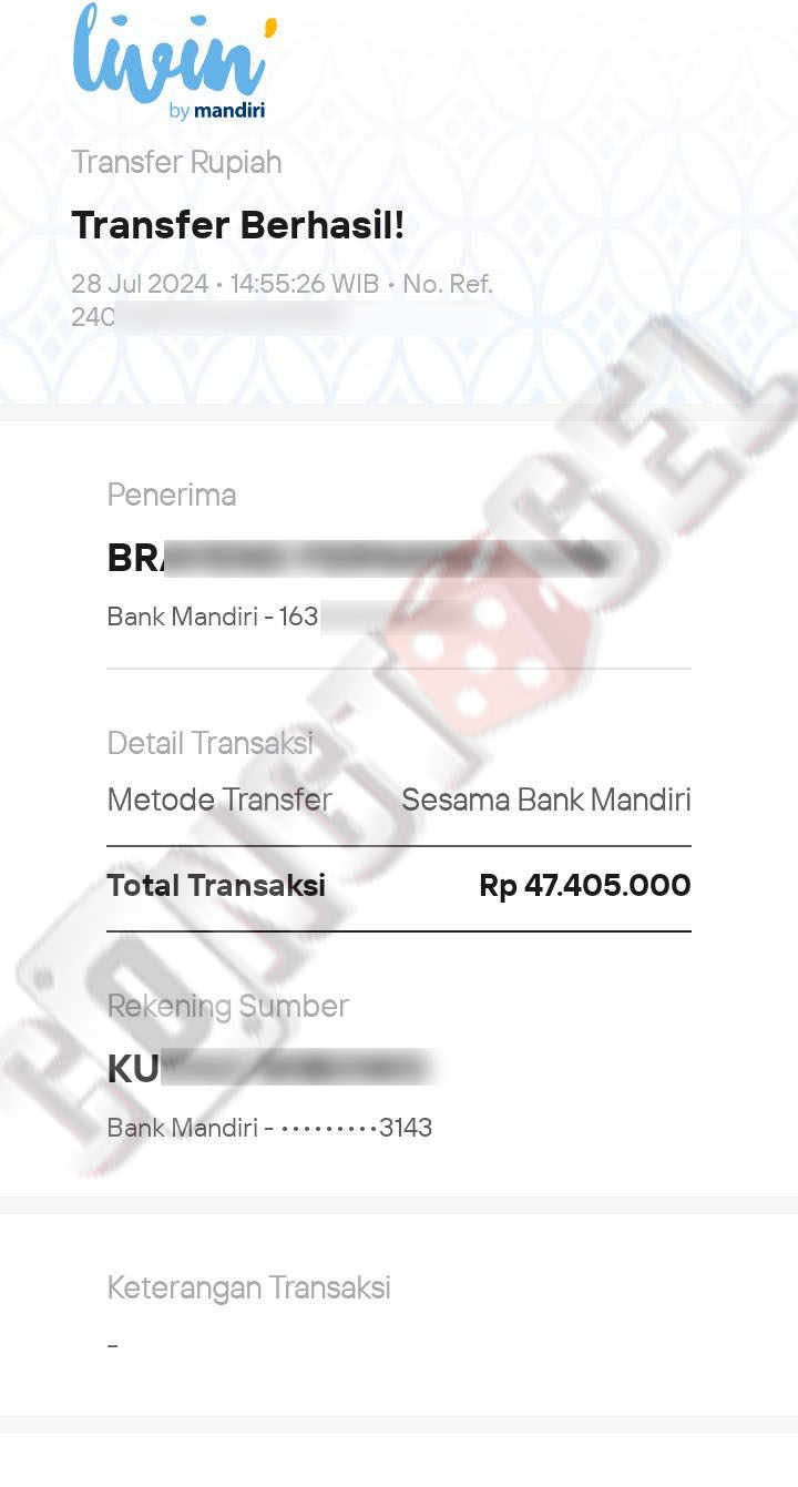 Dibawah ini merupakan bukti transfer pembayaran JP kemenangan member CONGTOGEL. Ini membuktikan jika kami adalah bandar togel yang sangat kredible dan dapat dipercaya.