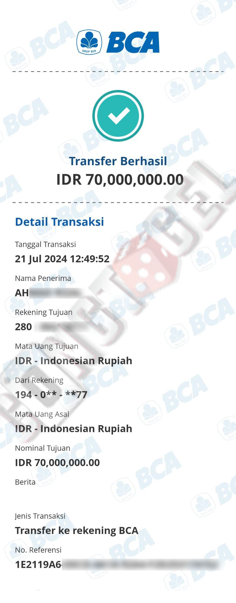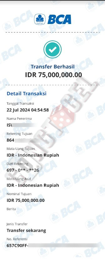 Dibawah ini merupakan bukti transfer pembayaran JP kemenangan member CONGTOGEL. Ini membuktikan jika kami adalah bandar togel yang sangat kredible dan dapat dipercaya.