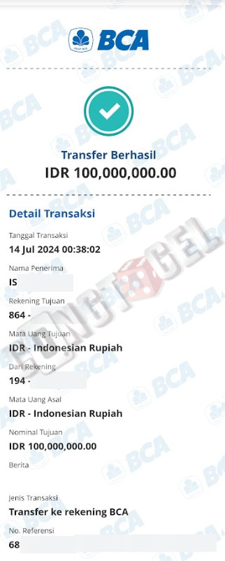 Dibawah ini merupakan bukti transfer pembayaran JP kemenangan member CONGTOGEL. Ini membuktikan jika kami adalah bandar togel yang sangat kredible dan dapat dipercaya.