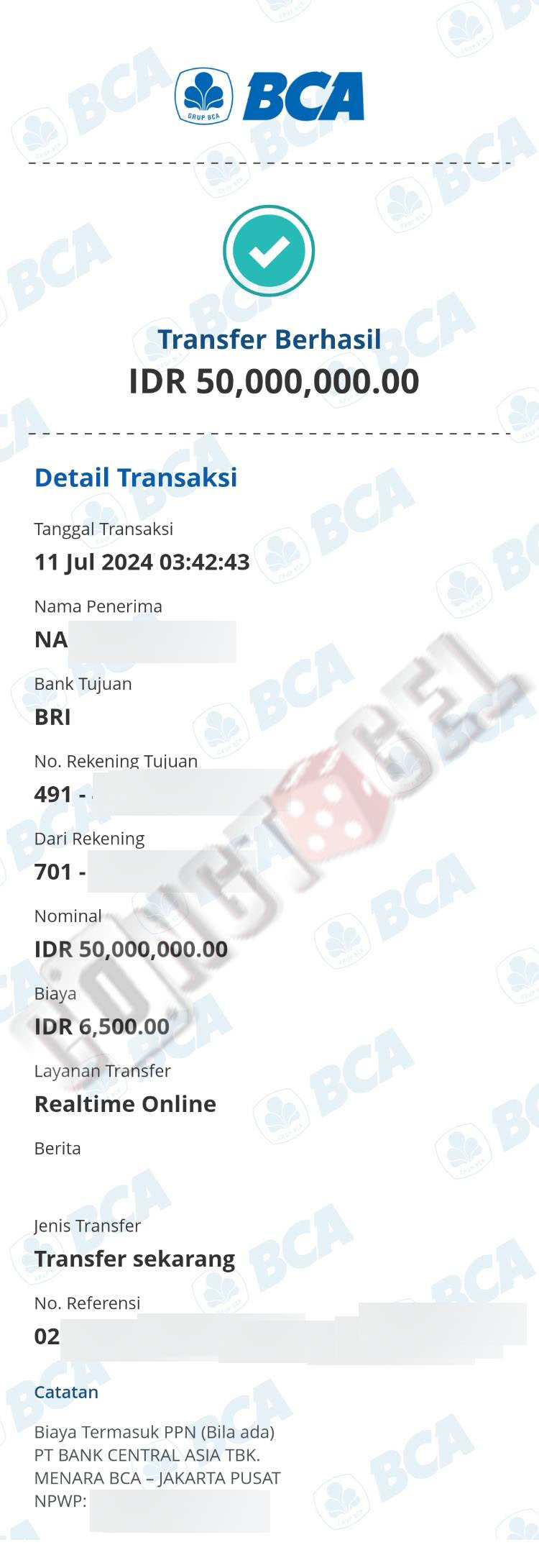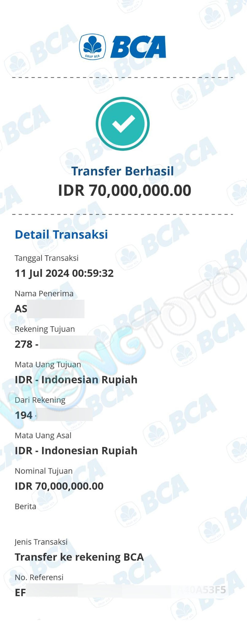Dibawah ini merupakan bukti transfer pembayaran JP kemenangan member CONGTOGEL. Ini membuktikan jika kami adalah bandar togel yang sangat kredible dan dapat dipercaya.