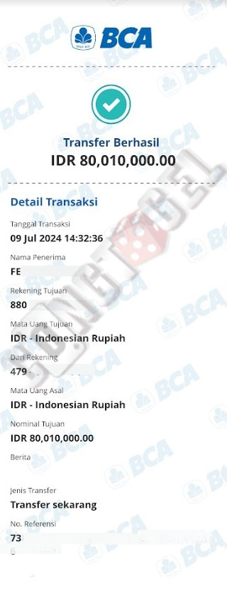 Dibawah ini merupakan bukti transfer pembayaran JP kemenangan member CONGTOGEL. Ini membuktikan jika kami adalah bandar togel yang sangat kredible dan dapat dipercaya.