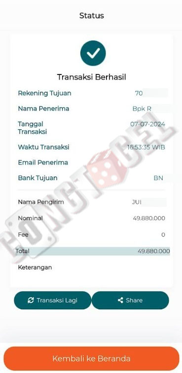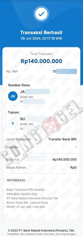 Dibawah ini merupakan bukti transfer pembayaran JP kemenangan member CONGTOGEL. Ini membuktikan jika kami adalah bandar togel yang sangat kredible dan dapat dipercaya.