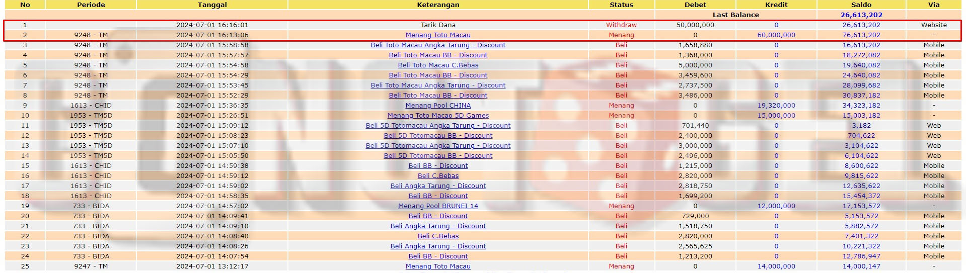 Dibawah ini merupakan bukti transfer pembayaran JP kemenangan member CONGTOGEL. Ini membuktikan jika kami adalah bandar togel yang sangat kredible dan dapat dipercaya.