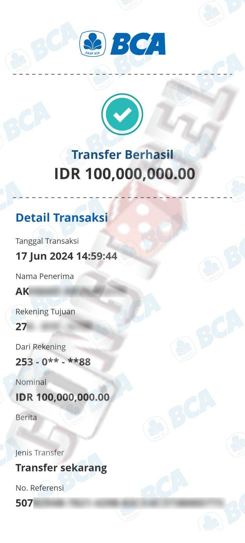 Dibawah ini merupakan bukti transfer pembayaran JP kemenangan member CONGTOGEL. Ini membuktikan jika kami adalah bandar togel yang sangat kredible dan dapat dipercaya.