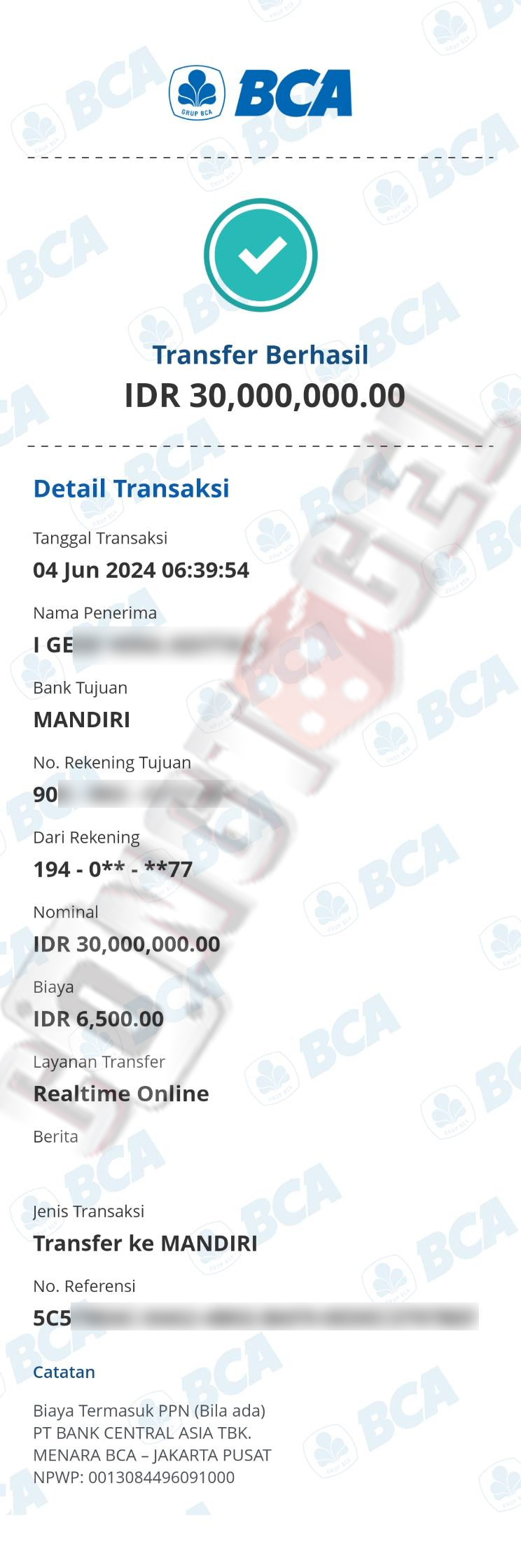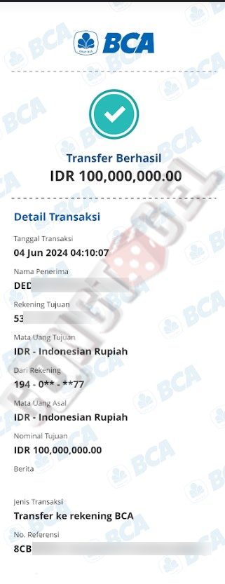 Dibawah ini merupakan bukti transfer pembayaran JP kemenangan member CONGTOGEL. Ini membuktikan jika kami adalah bandar togel yang sangat kredible dan dapat dipercaya.