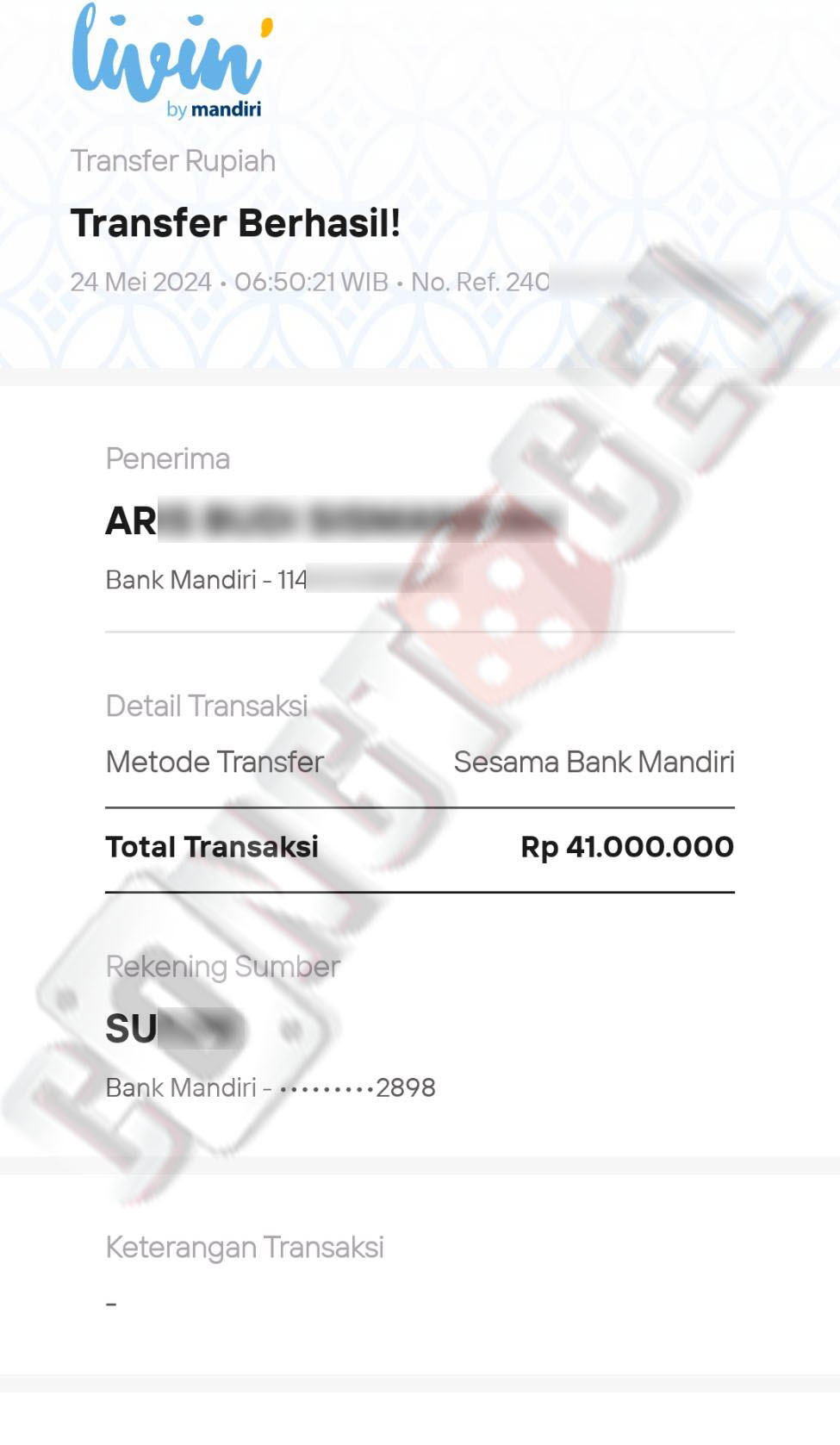 Dibawah ini merupakan bukti transfer pembayaran JP kemenangan member CONGTOGEL. Ini membuktikan jika kami adalah bandar togel yang sangat kredible dan dapat dipercaya.