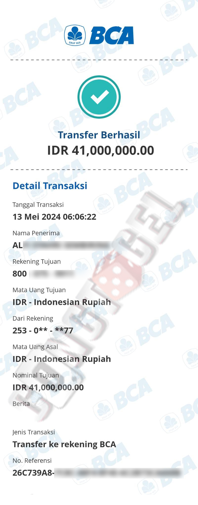 Dibawah ini merupakan bukti transfer pembayaran JP kemenangan member CONGTOGEL. Ini membuktikan jika kami adalah bandar togel yang sangat kredible dan dapat dipercaya.