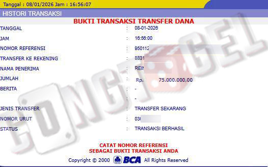 Dibawah ini merupakan bukti transfer pembayaran JP kemenangan member CONGTOGEL. Ini membuktikan jika kami adalah bandar togel yang sangat kredible dan dapat dipercaya.