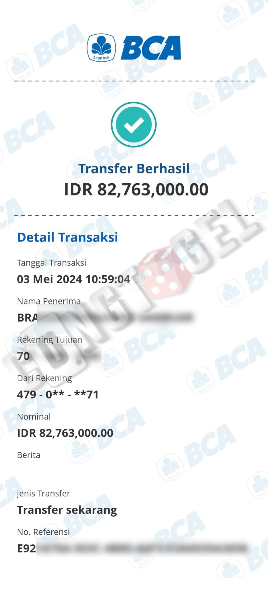 Dibawah ini merupakan bukti transfer pembayaran JP kemenangan member CONGTOGEL. Ini membuktikan jika kami adalah bandar togel yang sangat kredible dan dapat dipercaya.