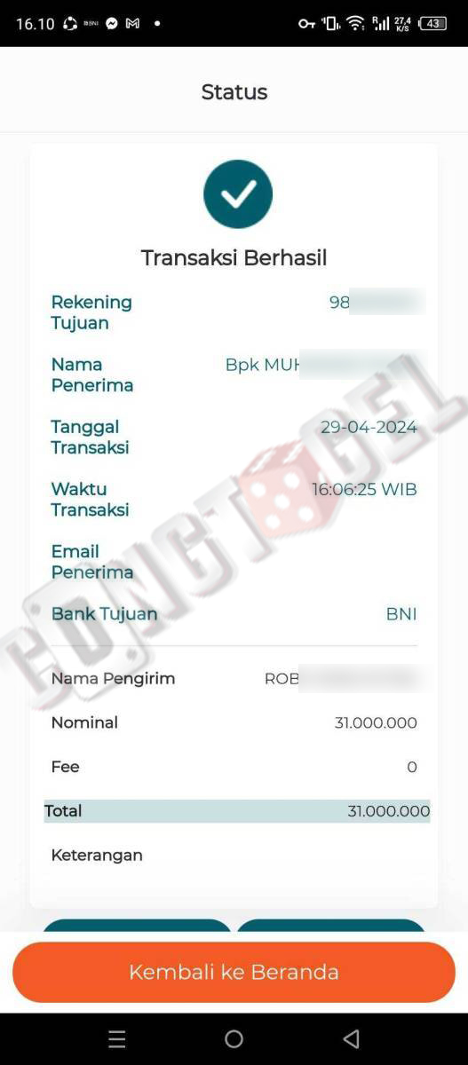 Dibawah ini merupakan bukti transfer pembayaran JP kemenangan member CONGTOGEL. Ini membuktikan jika kami adalah bandar togel yang sangat kredible dan dapat dipercaya.
