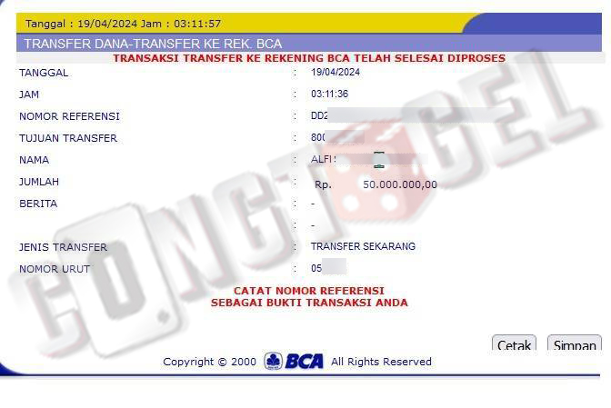 Dibawah ini merupakan bukti transfer pembayaran JP kemenangan member CONGTOGEL. Ini membuktikan jika kami adalah bandar togel yang sangat kredible dan dapat dipercaya.