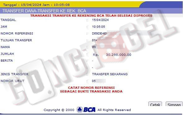 Dibawah ini merupakan bukti transfer pembayaran JP kemenangan member CONGTOGEL. Ini membuktikan jika kami adalah bandar togel yang sangat kredible dan dapat dipercaya.