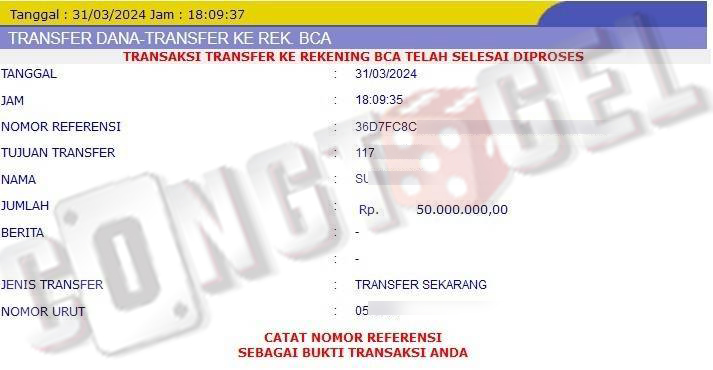 Dibawah ini merupakan bukti transfer pembayaran JP kemenangan member CONGTOGEL. Ini membuktikan jika kami adalah bandar togel yang sangat kredible dan dapat dipercaya.