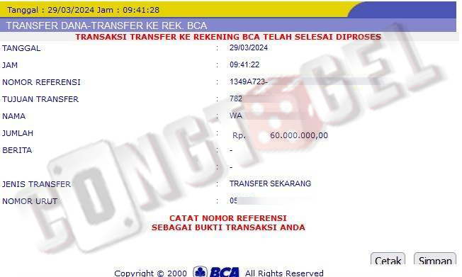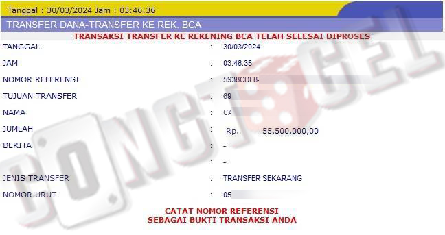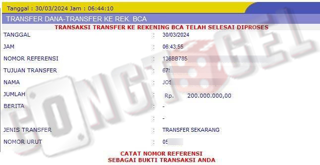 Dibawah ini merupakan bukti transfer pembayaran JP kemenangan member CONGTOGEL. Ini membuktikan jika kami adalah bandar togel yang sangat kredible dan dapat dipercaya.