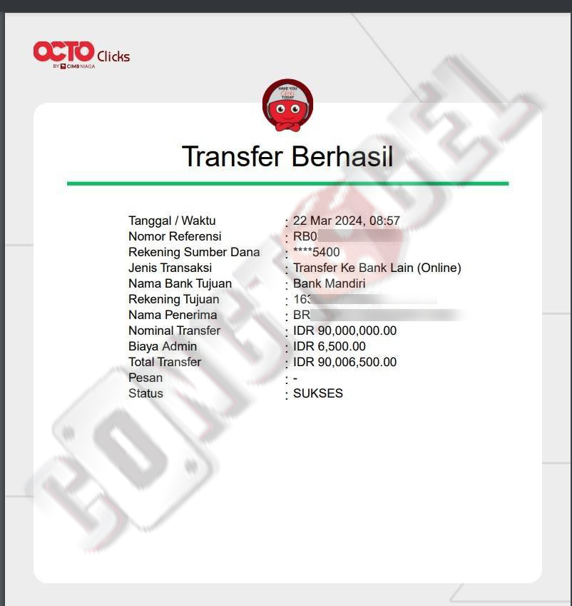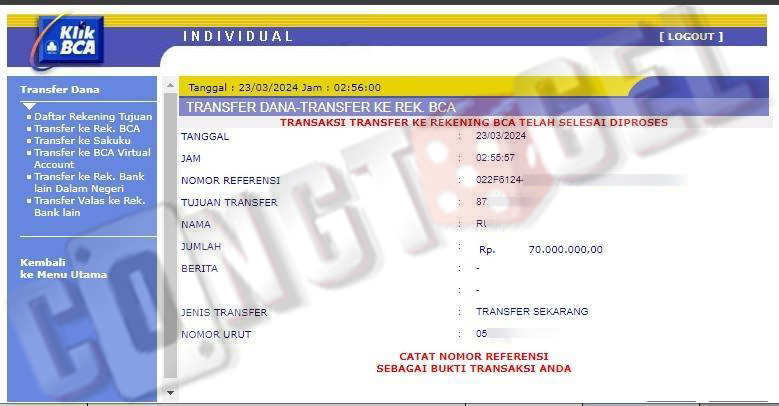 Dibawah ini merupakan bukti transfer pembayaran JP kemenangan member CONGTOGEL. Ini membuktikan jika kami adalah bandar togel yang sangat kredible dan dapat dipercaya.