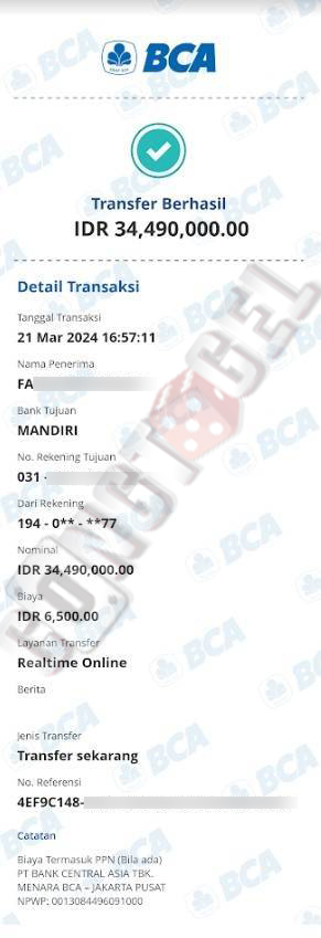 Dibawah ini merupakan bukti transfer pembayaran JP kemenangan member CONGTOGEL. Ini membuktikan jika kami adalah bandar togel yang sangat kredible dan dapat dipercaya.