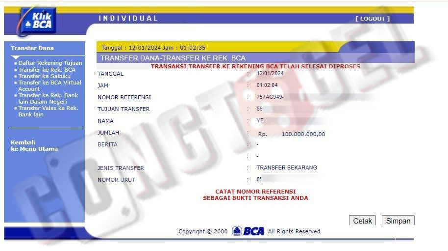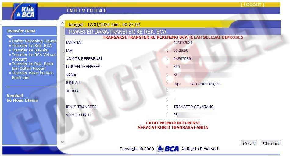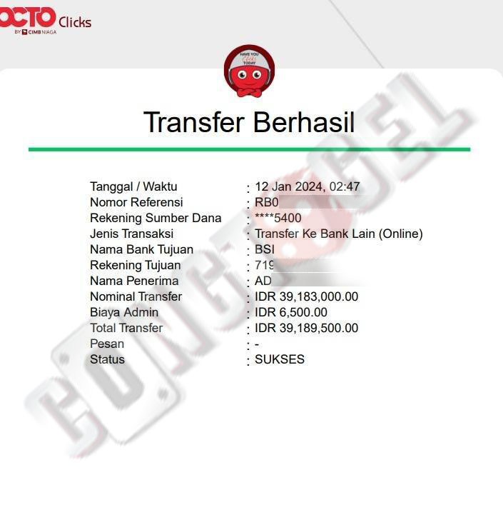 Dibawah ini merupakan bukti transfer pembayaran JP kemenangan member CONGTOGEL. Ini membuktikan jika kami adalah bandar togel yang sangat kredible dan dapat dipercaya.