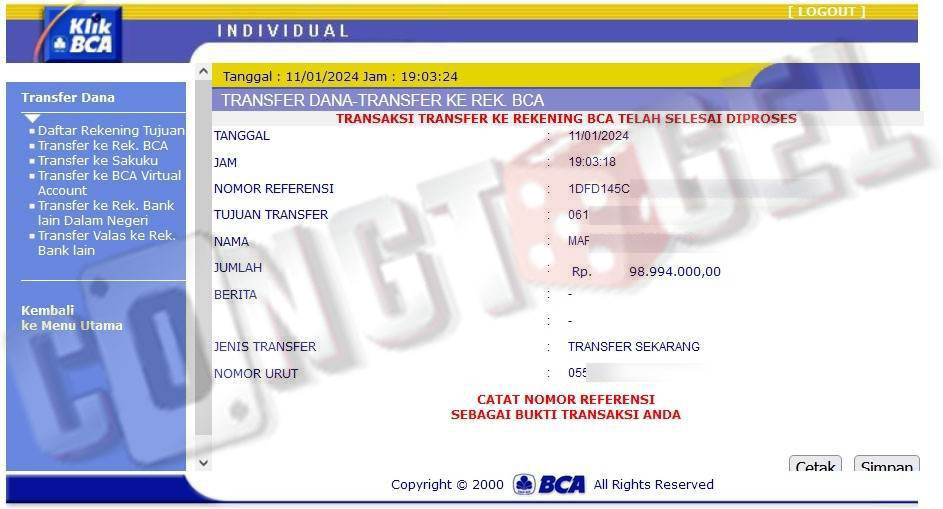 Dibawah ini merupakan bukti transfer pembayaran JP kemenangan member CONGTOGEL. Ini membuktikan jika kami adalah bandar togel yang sangat kredible dan dapat dipercaya.