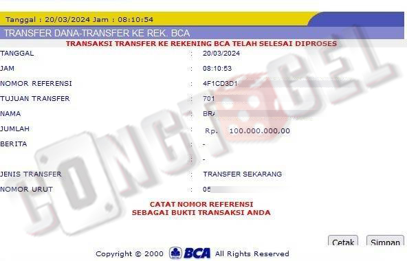 Dibawah ini merupakan bukti transfer pembayaran JP kemenangan member CONGTOGEL. Ini membuktikan jika kami adalah bandar togel yang sangat kredible dan dapat dipercaya.