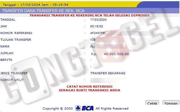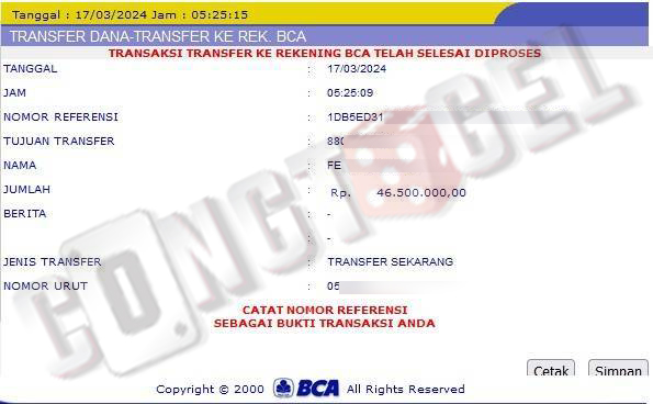 Dibawah ini merupakan bukti transfer pembayaran JP kemenangan member CONGTOGEL. Ini membuktikan jika kami adalah bandar togel yang sangat kredible dan dapat dipercaya.