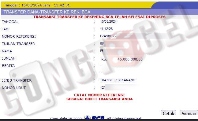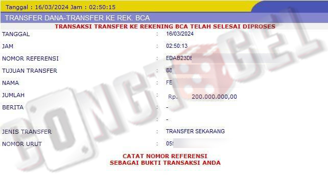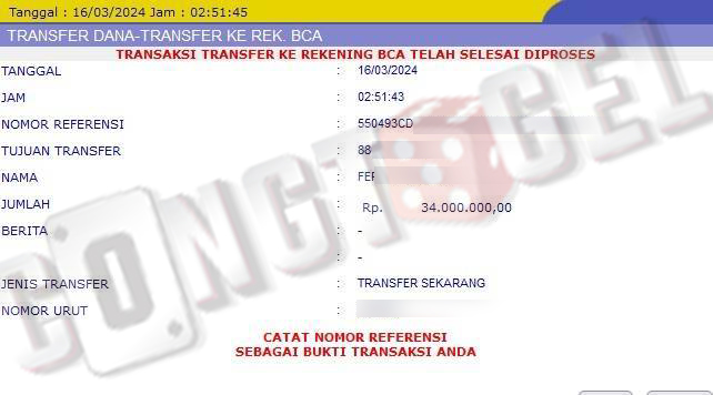 Dibawah ini merupakan bukti transfer pembayaran JP kemenangan member CONGTOGEL. Ini membuktikan jika kami adalah bandar togel yang sangat kredible dan dapat dipercaya.