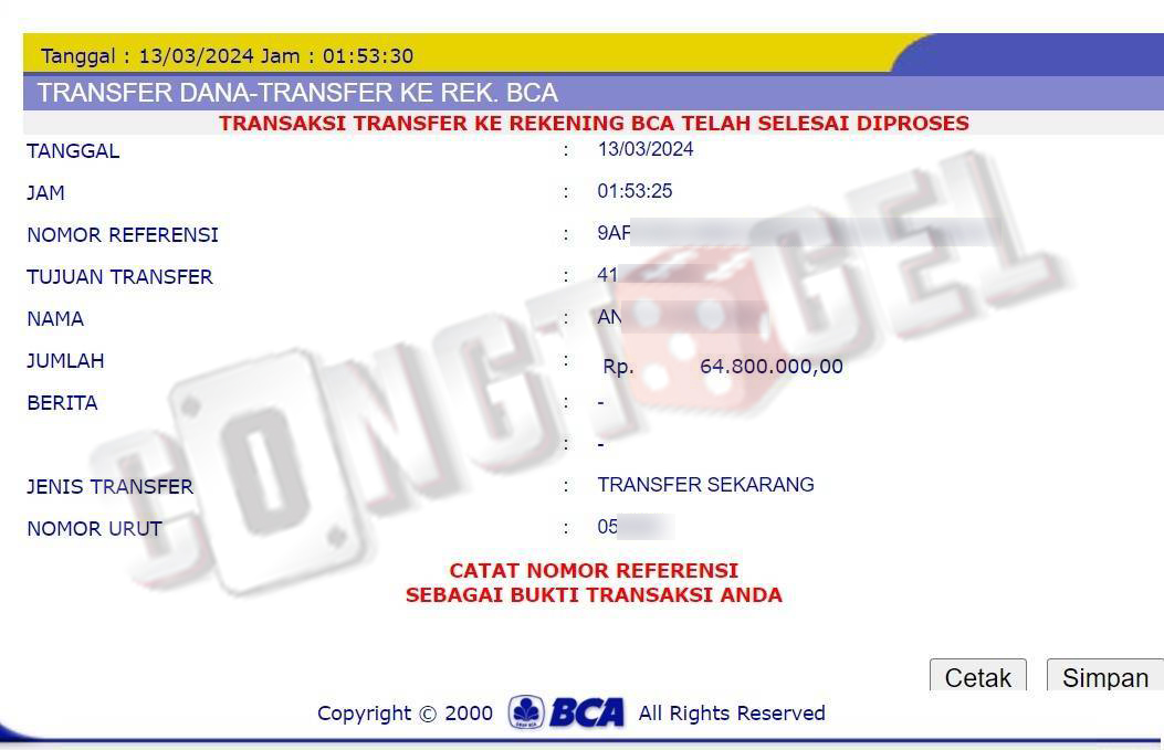 Dibawah ini merupakan bukti transfer pembayaran JP kemenangan member CONGTOGEL. Ini membuktikan jika kami adalah bandar togel yang sangat kredible dan dapat dipercaya.
