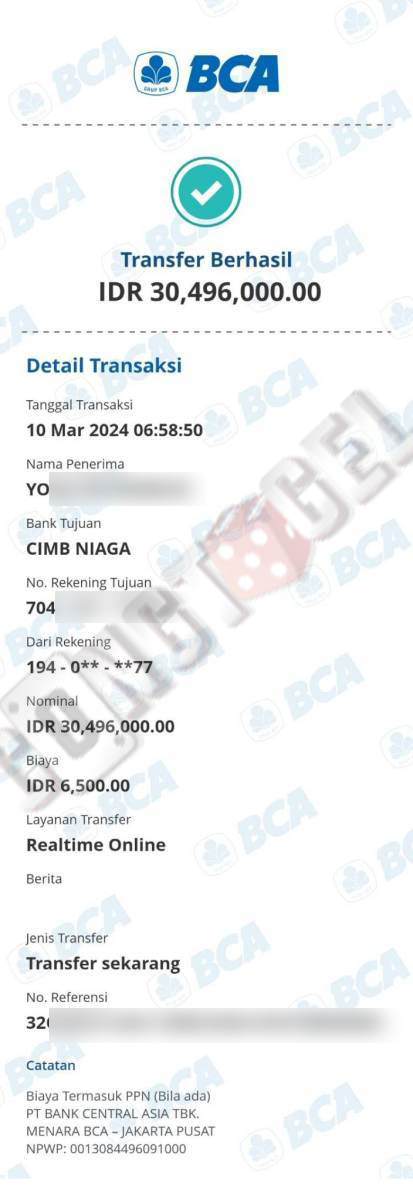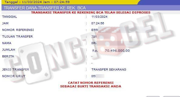 Dibawah ini merupakan bukti transfer pembayaran JP kemenangan member CONGTOGEL. Ini membuktikan jika kami adalah bandar togel yang sangat kredible dan dapat dipercaya.