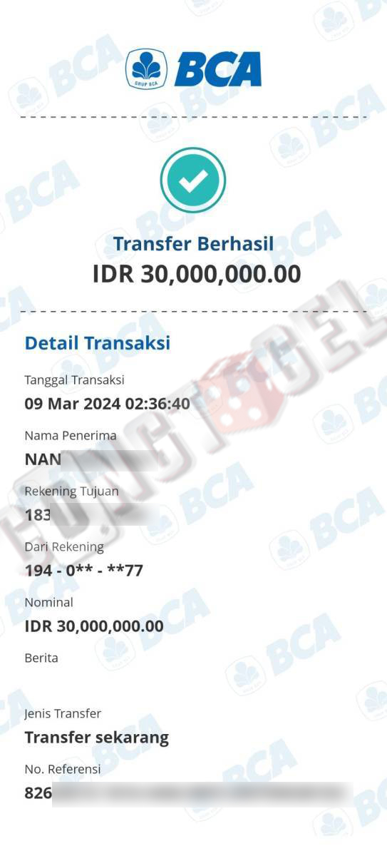 Dibawah ini merupakan bukti transfer pembayaran JP kemenangan member CONGTOGEL. Ini membuktikan jika kami adalah bandar togel yang sangat kredible dan dapat dipercaya.