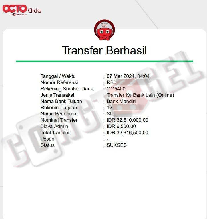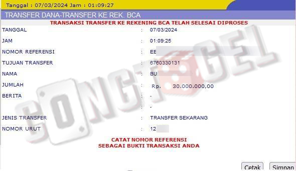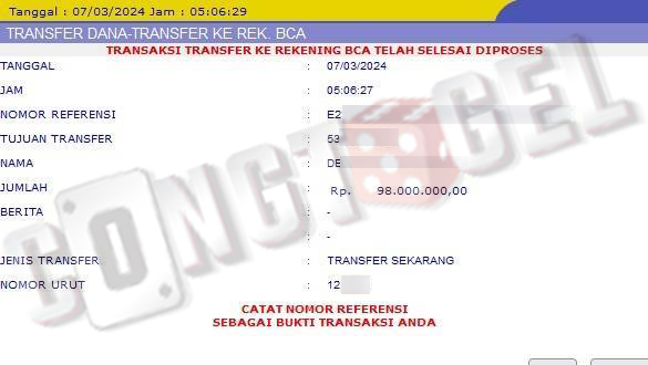 Dibawah ini merupakan bukti transfer pembayaran JP kemenangan member CONGTOGEL. Ini membuktikan jika kami adalah bandar togel yang sangat kredible dan dapat dipercaya.