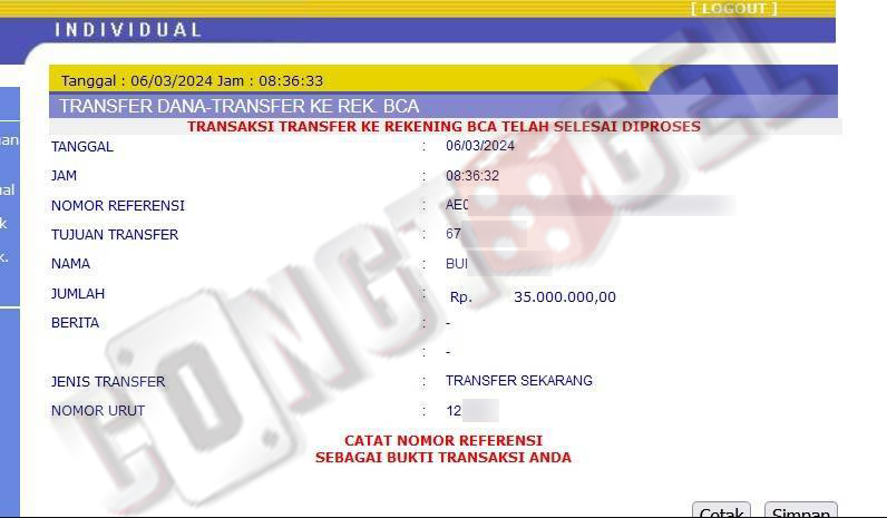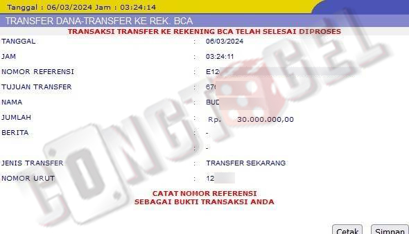 Dibawah ini merupakan bukti transfer pembayaran JP kemenangan member CONGTOGEL. Ini membuktikan jika kami adalah bandar togel yang sangat kredible dan dapat dipercaya.