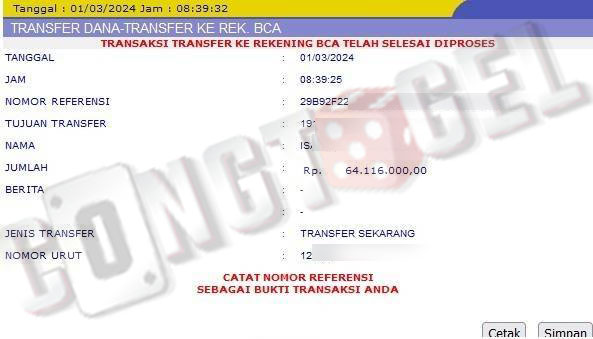 Dibawah ini merupakan bukti transfer pembayaran JP kemenangan member CONGTOGEL. Ini membuktikan jika kami adalah bandar togel yang sangat kredible dan dapat dipercaya.