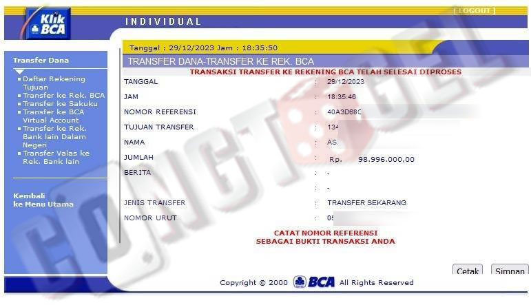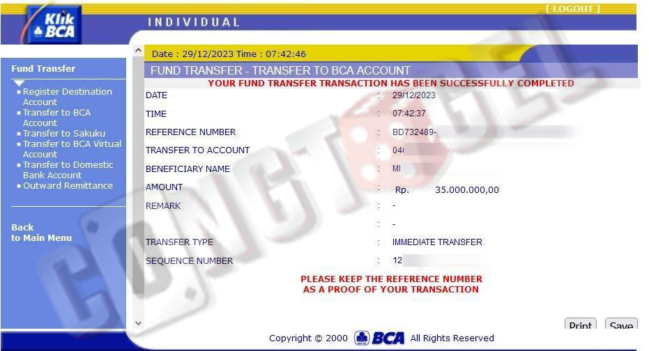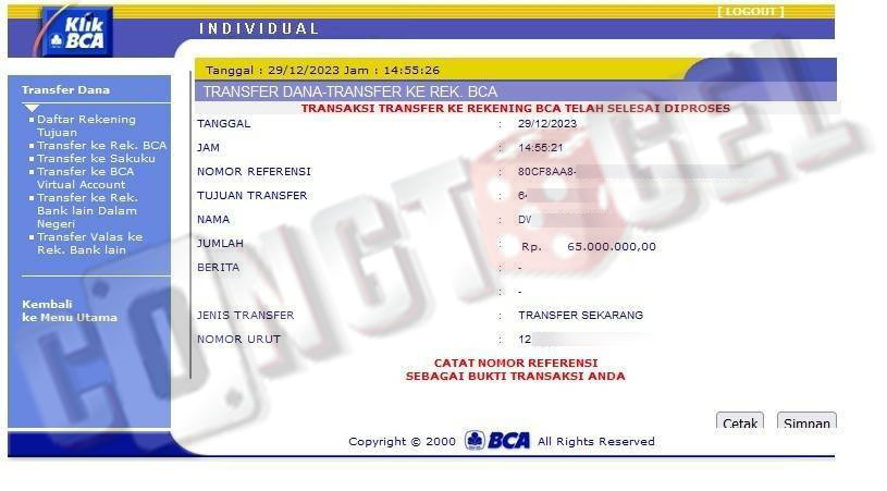 Dibawah ini merupakan bukti transfer pembayaran JP kemenangan member CONGTOGEL. Ini membuktikan jika kami adalah bandar togel yang sangat kredible dan dapat dipercaya.