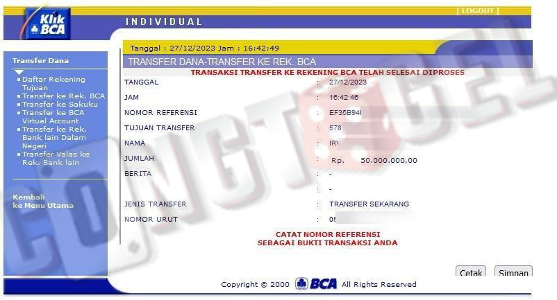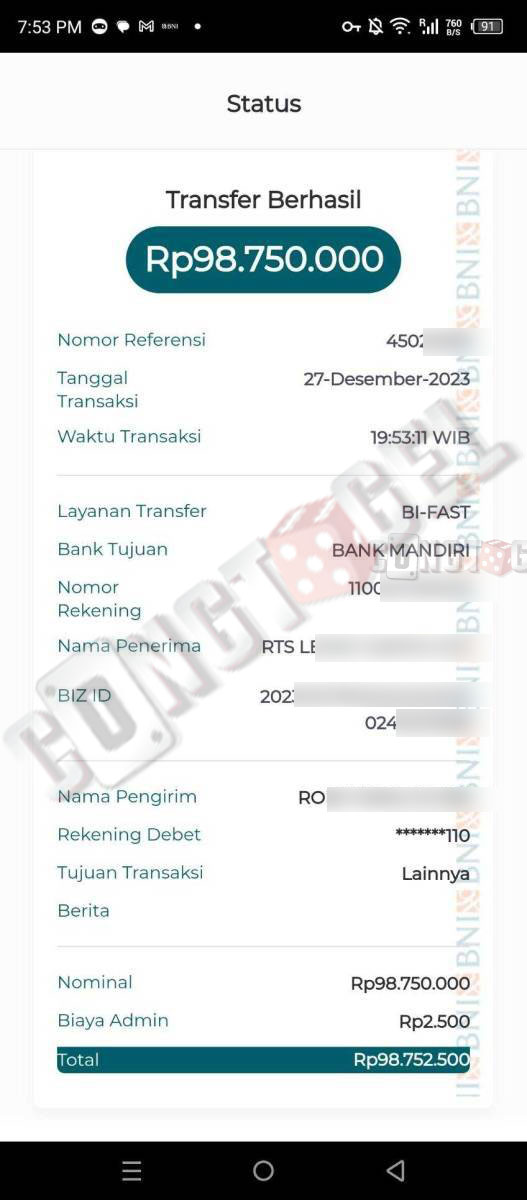 Dibawah ini merupakan bukti transfer pembayaran JP kemenangan member CONGTOGEL. Ini membuktikan jika kami adalah bandar togel yang sangat kredible dan dapat dipercaya.