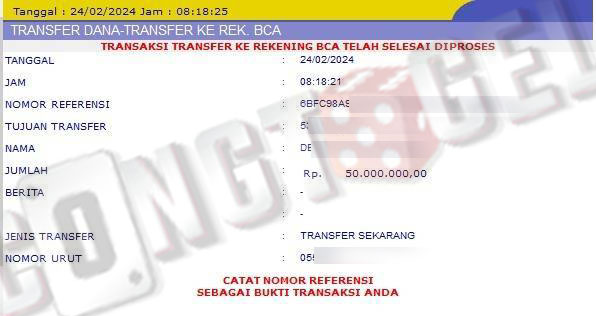 Dibawah ini merupakan bukti transfer pembayaran JP kemenangan member CONGTOGEL. Ini membuktikan jika kami adalah bandar togel yang sangat kredible dan dapat dipercaya.