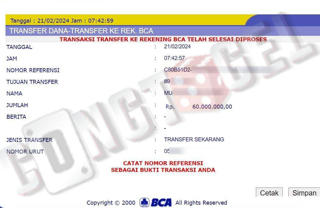 Dibawah ini merupakan bukti transfer pembayaran JP kemenangan member CONGTOGEL. Ini membuktikan jika kami adalah bandar togel yang sangat kredible dan dapat dipercaya.