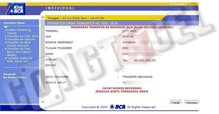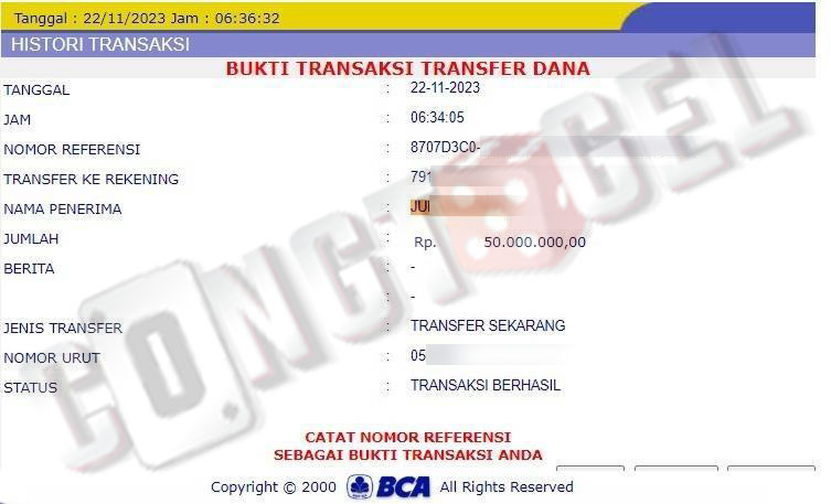 Dibawah ini merupakan bukti transfer pembayaran JP kemenangan member CONGTOGEL. Ini membuktikan jika kami adalah bandar togel yang sangat kredible dan dapat dipercaya.